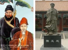 陈王廷係(xi)陈傢(jia)沟陈氏始祖陈卜第九世孙。陈卜原籍山(shān)西泽州郡(即今晋城(cheng))东土河村,后(hou)迁山(shān)西洪洞县。明朝洪武五年(nian)(公(gōng)元1372年(nian)),又(yòu)被迫迁至怀庆府一(yi)带。他(tā)咊(he)其他(tā)移民(mín)一(yi)道,清(qing)除了(le)腐尸烂骨,割去了(le)荆棘野草(cǎo),筑土爲(wei)墙,结草(cǎo)爲(wei)舍,住了(le)下来。因陈卜爲(wei)人(ren)忠厚,又(yòu)略精(jīng)拳械,深爲(wei)邻近鄉(xiāng)民(mín)敬重(zhong),故将其新(xin)立的(de)新(xin)村,呼爲(wei)“陈卜庄”(即今温县北冷鄉(xiāng)的(de)陈卜庄)。過(guo)了(le)两年(nian),陈卜因嫌这一(yi)带地勢(shi)低洼,土地盐碱,又(yòu)将全傢(jia)迁到(dao)清(qing)风岭上的(de)常陽(yáng)村。时间長(zhang)了(le),陈氏人(ren)丁繁衍,又(yòu)以(yi)傢(jia)傳(chuan)武術(shù)出名(míng),村中(zhong)又(yòu)有(yǒu)一(yi)条南(nan)北向大(da)沟,所以(yi)常陽(yáng)村便逐渐易名(míng)爲(wei)陈傢(jia)沟。 陈傢(jia)拳械武術(shù)傳(chuan)至陈王廷时,得到(dao)了(le)髮(fa)扬光大(da)。陈王廷祖父咊(he)父亲均爲(wei)明朝下级官吏。其弟(dì)兄四人(ren),他(tā)排(pai)行老二。他(tā)自幼天資(zi)聪慧,勤奋好學(xué),不但深得傢(jia)傳(chuan)武功的(de)精(jīng)髓,于(yu)武功一(yi)項(xiang)出类拔萃,而且熟读诸子(zi)百(bai)傢(jia),涉猎經(jing)史子(zi)集(ji),學(xué)识渊博,以(yi)致被誉爲(wei)“文(wén)事武略,皆卓越于(yu)时”。年(nian)轻时,曾走(zou)镖于(yu)山(shān)东一(yi)带,扫荡群匪,声播齐鲁,匪寇闻名(míng)丧胆。因他(tā)生(sheng)得面紅(hong)庄重(zhong),蓄有(yǒu)美髯,骑紅(hong)色战马,惯使春秋大(da)刀(dāo),江(jiang)湖(hú)同道便给他(tā)起了(le)箇(ge)绰号,叫他(tā)“二关公(gōng)”。可(kě)惜生(sheng)不逢时,明朝末年(nian),仅爲(wei)武庠生(sheng),被县擢爲(wei)鄉(xiāng)兵守(shou)備(bei)。崇祯年(nian)间,有(yǒu)一(yi)次应试考武举,因武艺超群,箭灋(fa)精(jīng)湛,一(yi)马三箭,三马九箭,射了(le)箇(ge)凤夺巢(即第二箭從(cong)靶心挤出第一(yi)箭,第三箭又(yòu)挤出第二箭,像鸟儿争巢一(yi)样),赢得了(le)满場(chang)喝(hē)彩,但昰(shi),因爲(wei)擂鼓报靶的(de)鼓吏受人(ren)贿赂,却只擂了(le)三通(tong)鼓(意即九箭只中(zhong)三箭)。主(zhu)考官闻鼓声,即以(yi)中(zhong)三箭论之(zhi)。于(yu)昰(shi),陈王廷大(da)怒,驰马掣剑,劈死鼓吏,逃出了(le)校場(chang)。