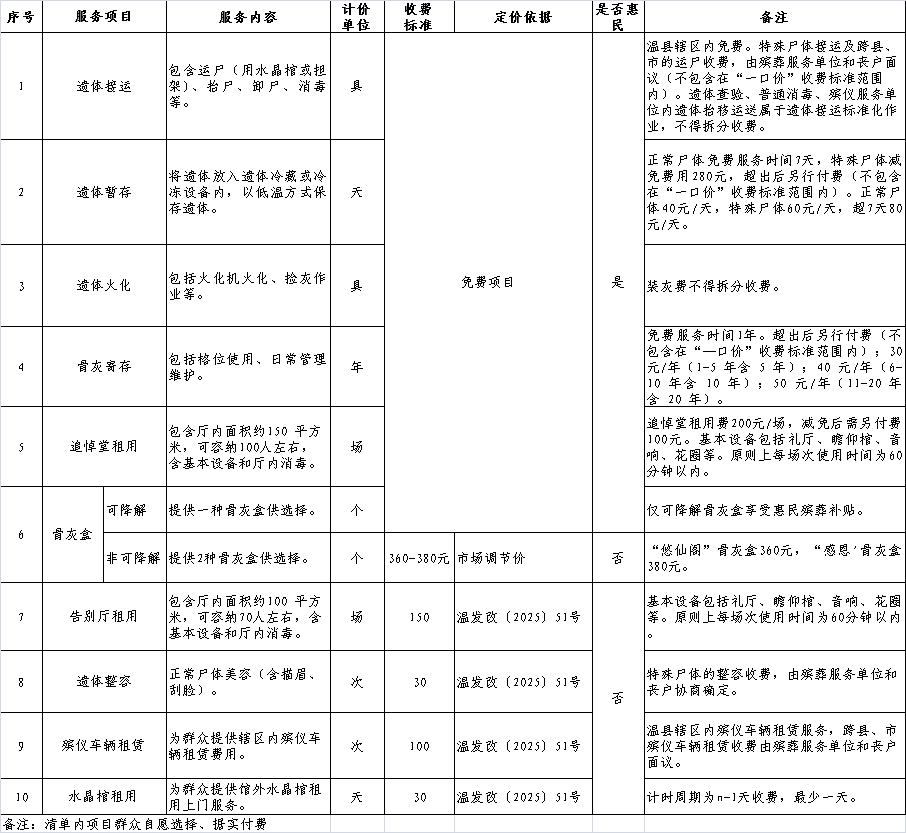 温县殡葬基础服務(wu)清(qing)單(dan)